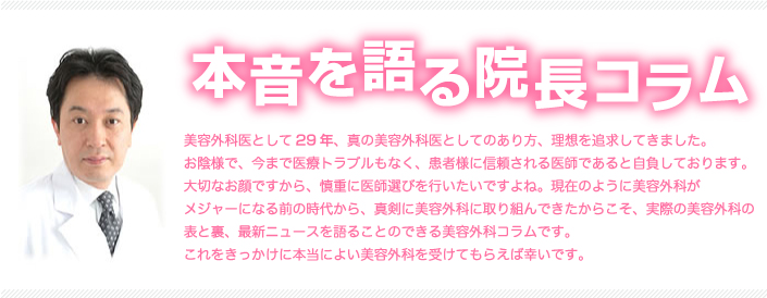 私は宇都宮で美容外科を開院して今年で19年になりますが、美容外科で今日この頃思うことは、驚愕すべき悪質な美容外科クリニックが全国で異常に増えてきたことです。