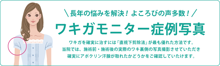 他院にてワキガ治療を行うもニオイが残ったことがお悩みで、当クリニックに来院されました。直視下剪除法を行いワキガは完治しました。