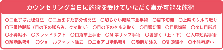 遠方の患者様、または海外からお越し頂く患者様の中で距離的、あるいは時間の都合上、カウンセリング当日に施術を受けたいというご要望を頂くことが多く見受けられます。 そこで事前メールによる画像診断、予約金のお支払いいただくことで当日の施術時間まで予約いただけるシステムを導入しております。 ご興味がある方は下記にご案内させていただいております。