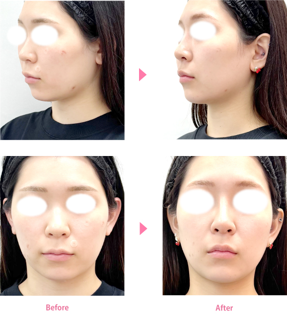 低い鼻がコンプレックスで、鼻筋を高くすることを希望され当クリニックに来院されました。I 型プロテーゼによる隆鼻術を行い、鼻筋が通り、鼻が高くなりました。