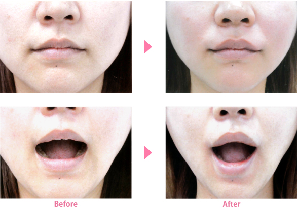 口角が下がっていたので、顔も寂しく、人から感じ悪い印象に見られがちで悩んでおられました。接客業をされておられ、作り笑いをしなくても、感じのいい印象になるために、永久的で傷跡の分からない口内法による口角挙上術を希望され、当クリニックに来院されました。 口内法による口角挙上術を行い、口角を挙上いたしました。口内法なので、顔には傷跡は残りません。